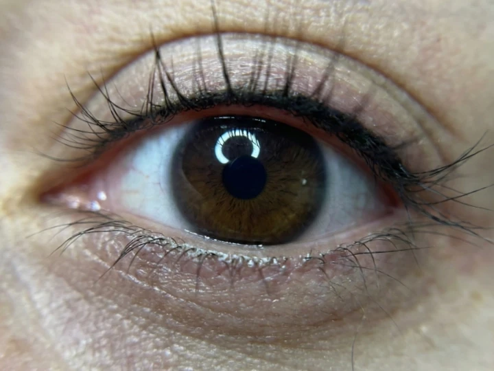Client Goal: Subtle lash line enhancement. Technique: Permanent Eyeliner Top Line. Healing Time: 4 weeks healed.